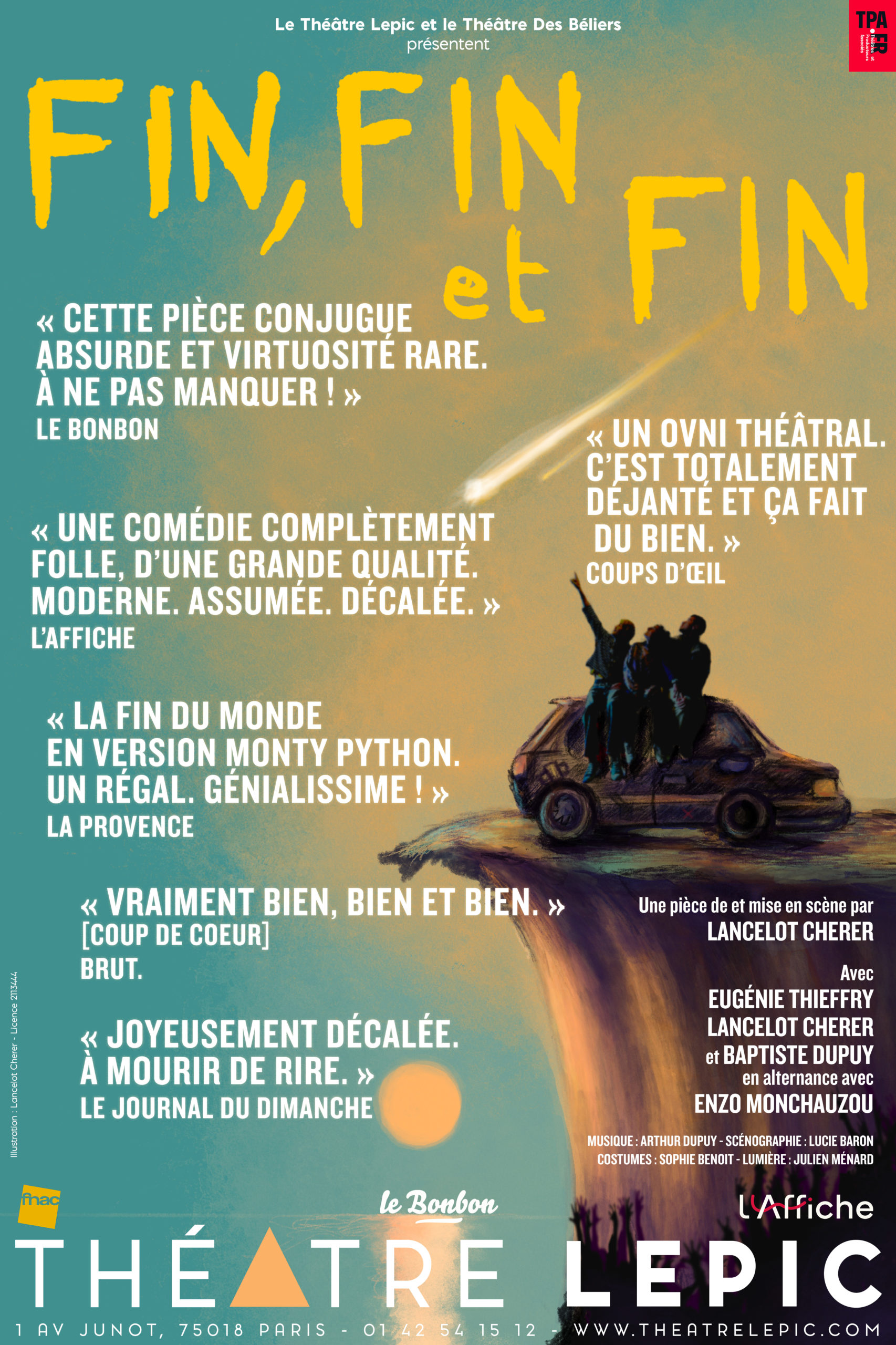 Pour tout contact billetterie : billetterie@theatrelepic.com + 01 42 54 15 12 (téléphone à partir de 17h)